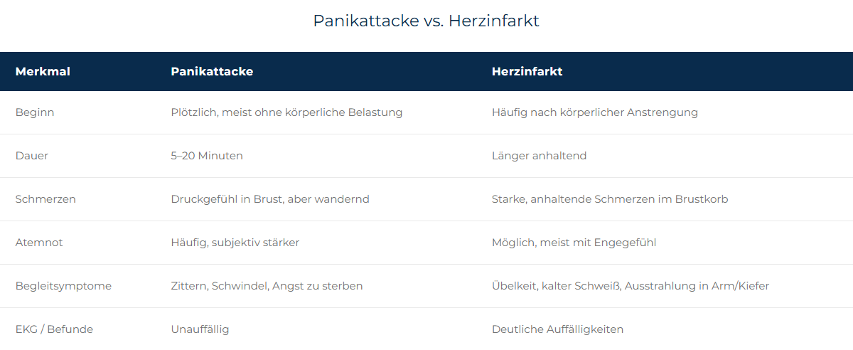 Eine Panikattacke ist eine plötzlich einsetzende Episode intensiver Angst, die ohne erkennbaren äußeren Auslöser auftritt. Innerhalb weniger Minuten reagiert der Körper mit Symptomen wie Herzrasen, Atemnot, Schwindel und Zittern. Diese körperlichen Reaktionen sind Teil einer übersteigerten Stressantwort, die evolutionär auf Flucht oder Kampf vorbereitet. Im Gehirn kommt es dabei zu einer massiven Aktivierung des limbischen Systems, insbesondere der Amygdala, die Gefahrensignale verarbeitet. Die Stresshormone Adrenalin und Noradrenalin führen zu beschleunigtem Herzschlag, erhöhter Muskelspannung und flacher Atmung. Obwohl keine objektive Bedrohung besteht, erlebt die betroffene Person ein starkes Gefühl der Lebensgefahr. Dieses intensive Erleben führt häufig zu der Angst, einen Herzinfarkt zu erleiden oder die Kontrolle zu verlieren.
